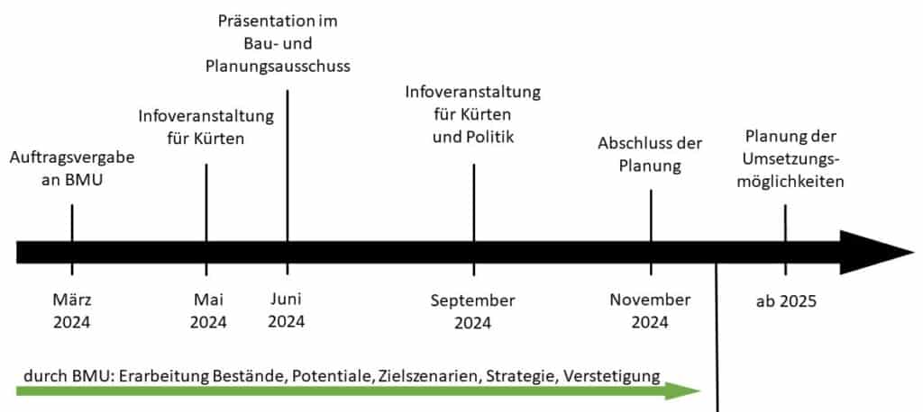 Zunächst ist festzuhalten, dass zur Kommunalen Wärmeplanung laut Wärmeplanungsgesetz, keine Umsetzungspflicht der Ergebnisse besteht. Diese dienen lediglich als Leitfaden für die energetischen Planungsprozesse. Der Ablauf ist dabei festgeschrieben und beinhaltet eine Analyse des Bestandes, das Aufzeigen von möglichen Potenzialen zur Einbringung erneuerbarer Energie, die Untersuchung von Zielszenarien, sowie das Entwickeln einer Wärmewendestrategie.